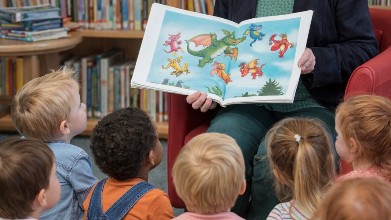 Krabbelgruppe zu Besuch in der Bücherei